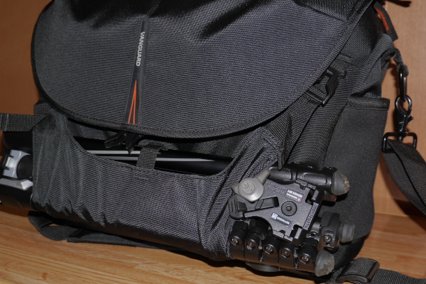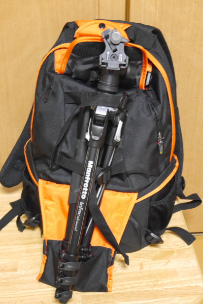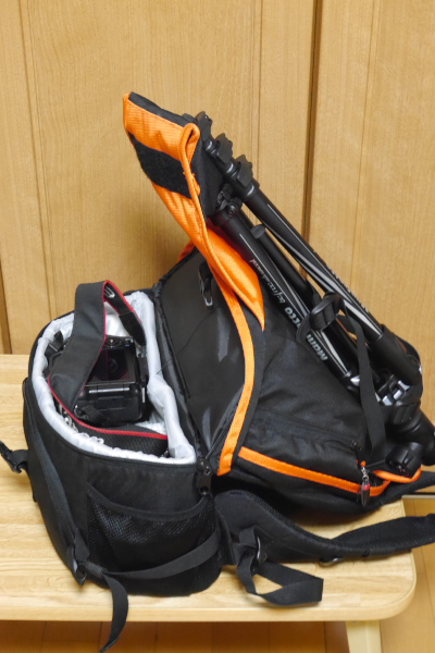 三脚もばっちり収納。ケースごと括り付けられるので良いですね。