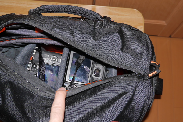 2気室構造で、上に荷物、下にカメラ。ですね。
