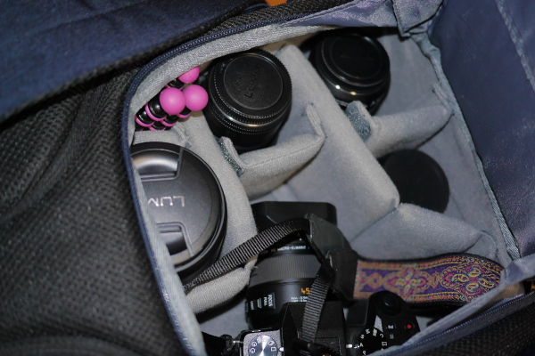 (本体に15-85を付けシグマの30mmF1.4と24mmと40mmのパンケーキとタムロンの16-300を収納)