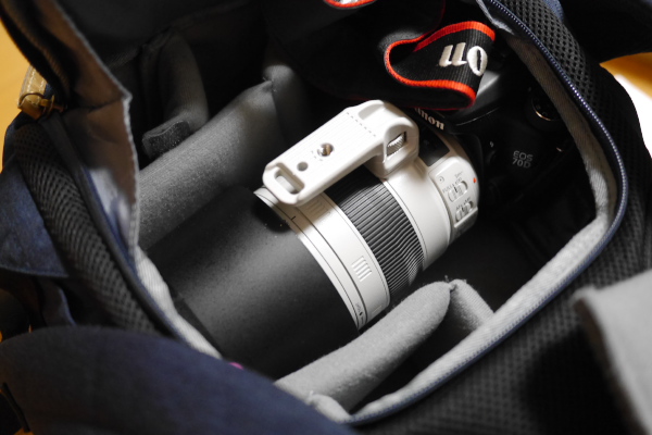 生粋な望遠レンズはちょっと苦しいけど、高倍率ズームはギリ収まります。