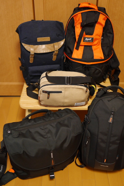 とりあえずカメラバッグはこの五個と、普通のカバンにインナーボックスを入れて使っています。