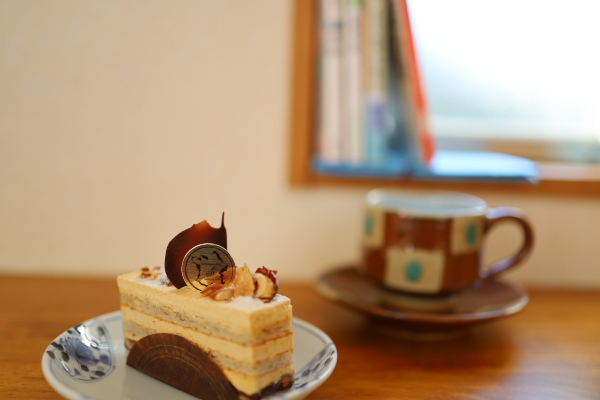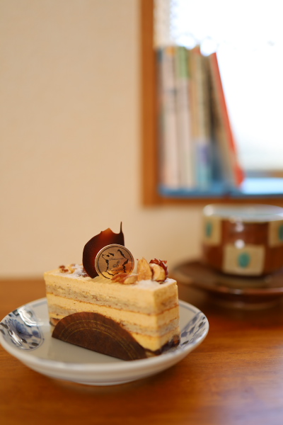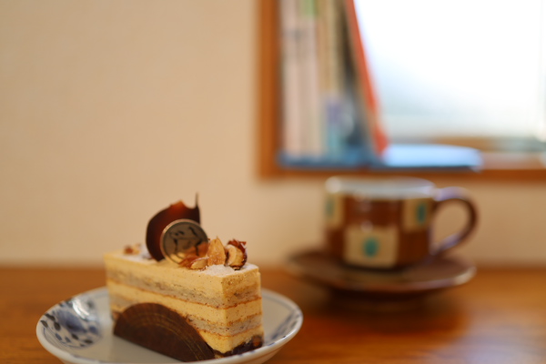 コーヒーカップはケーキに合わせて、なんとなく台の色とも合っている。