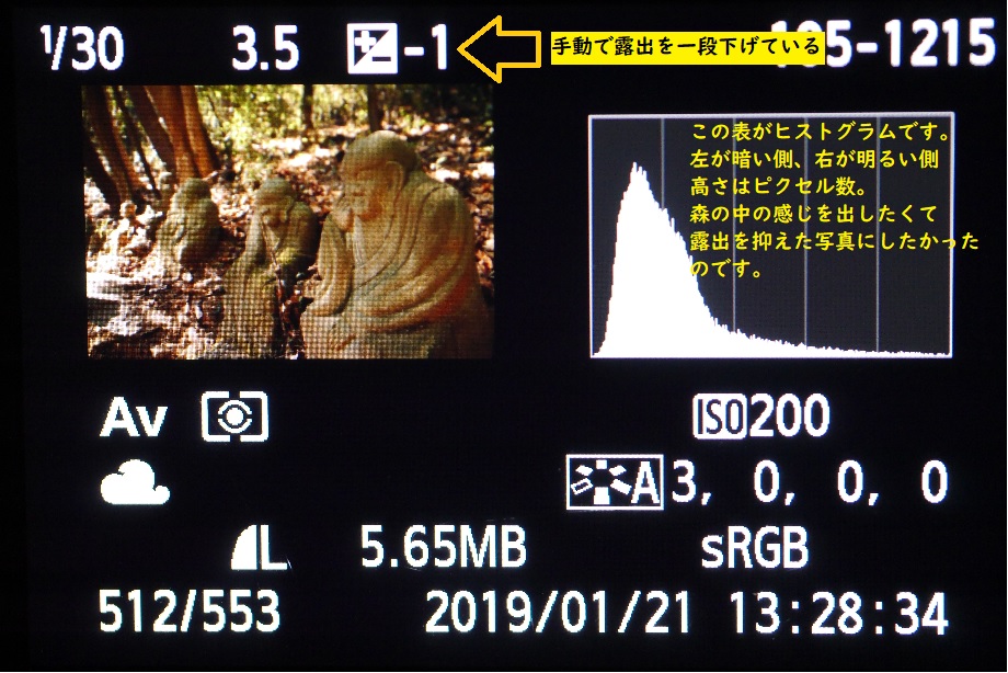 明るさ具合はヒストグラムで確認・参考にすることが出来る。