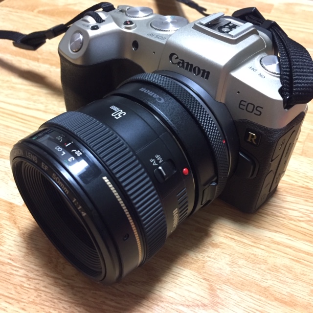 とりあえず、Rシリーズ専用の非Lレンズが出るまでのつなぎ的な感じで買いましたけど、EOS RPとのバランスも良くて、割と軽い。