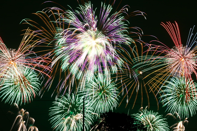 比較明合成で綺麗な花火や左右にちった花火を上手く入れるとそれっぽくなる。