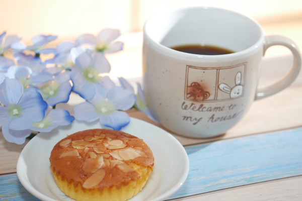 コーヒーカップはケーキに合わせて、なんとなく台の色とも合っている。