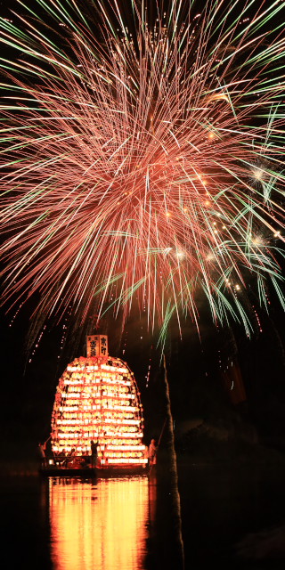 船の上に花火が来るイメージで別撮り合成。
