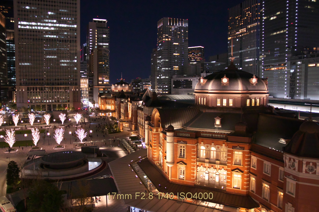 kitte屋上も三脚禁止なので、設定は絞り優先オート、ISOオートで絞り開放。