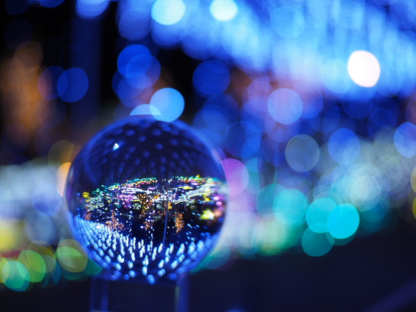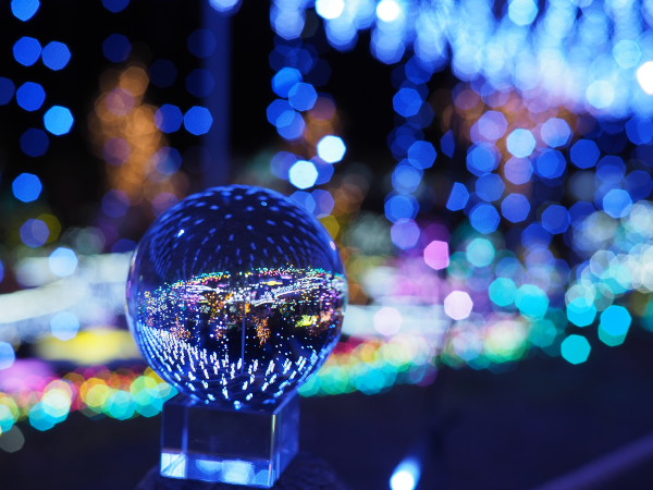 被写界深度の関係で開放より少し絞った方が良いレンズボールで丸いボケにするには